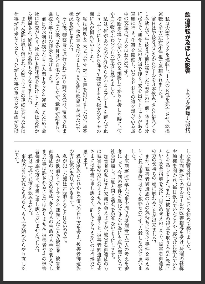 千葉県警 「飲酒運転受刑者手記」公開 お酒を飲む機会が多くなる時期がやってきた。千葉県警はこのほど、飲酒運転受刑者の手記を公開した。これ...