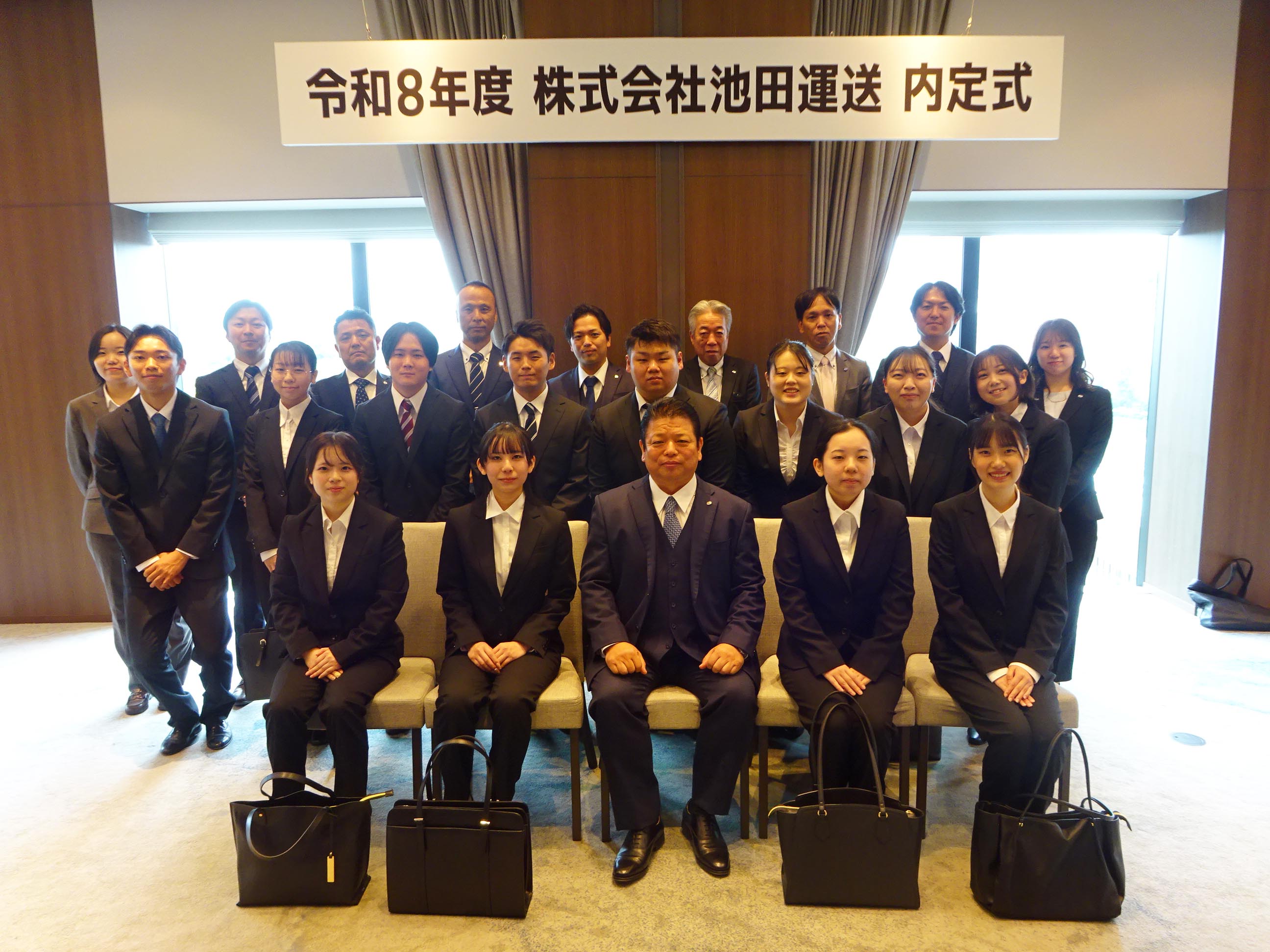 ㈱池田運送(池⽥⼀也社長、大阪府八尾市)は10月25日、大阪市のダブルツリーbyヒルトン大阪城で2026年度卒業予定大学生の内定式を行った。新卒採用は5年目となる。